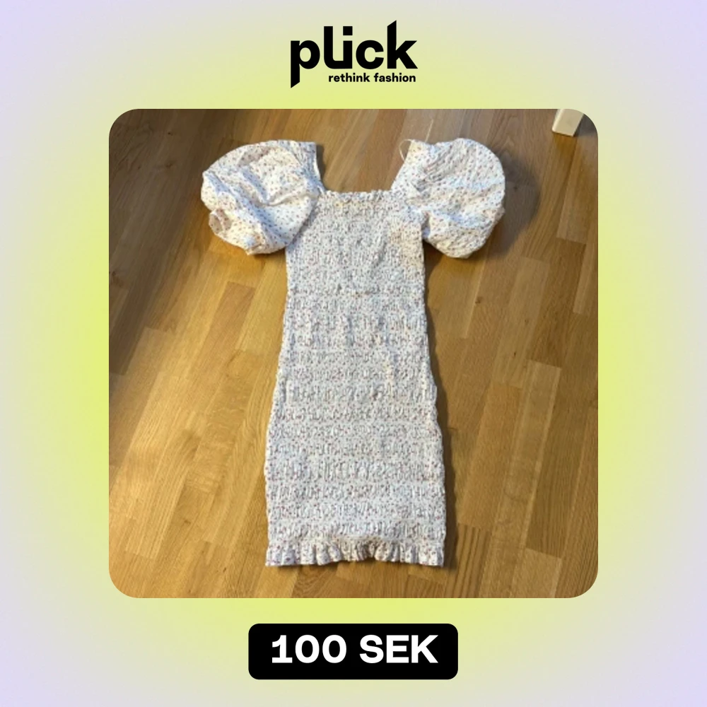 Jättefin midiklänning med stora ballongärmar 🤍 Körsbärsmönster i ribbad material 🍒