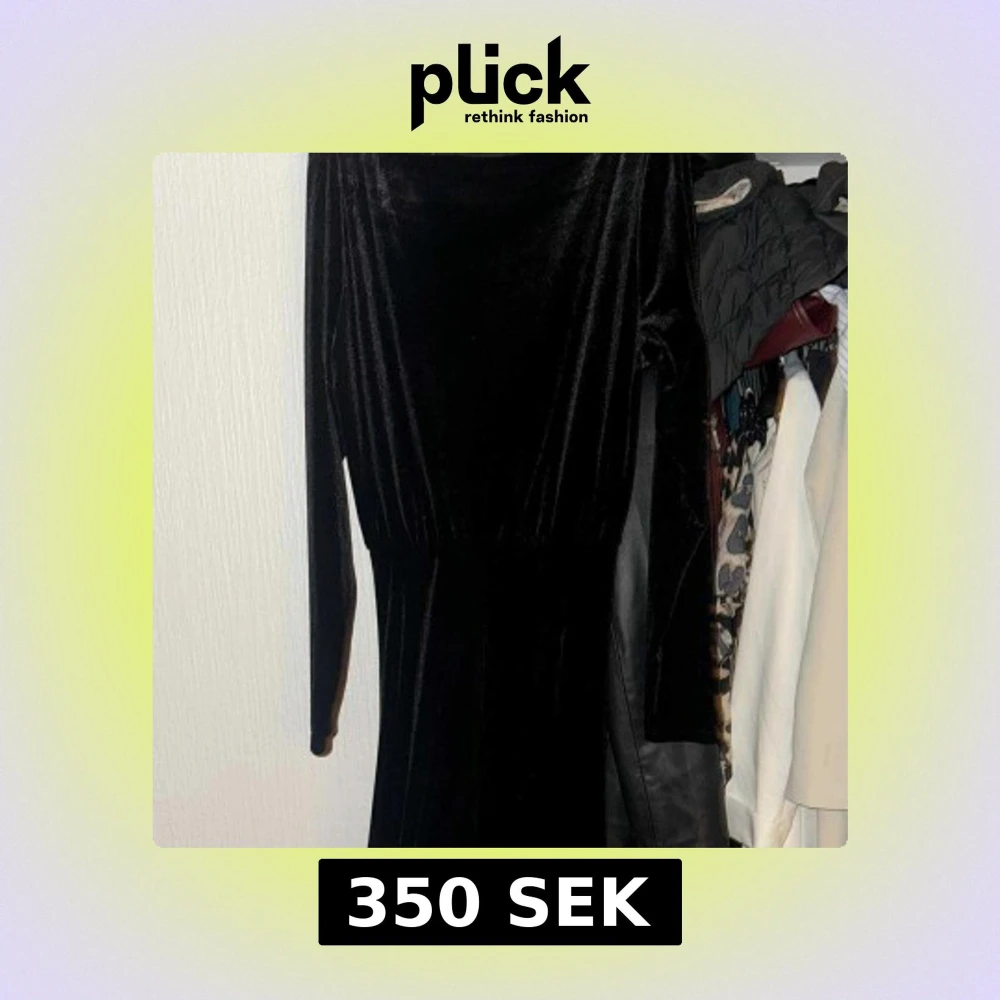 Säljer en svart långklänning i mjuk sammet med långärmade ärmar och markerad midja. Klänningen har en elegant och enkel design som ger en lyxig känsla. Perfekt för dig som gillar klassisk stil med en twist.