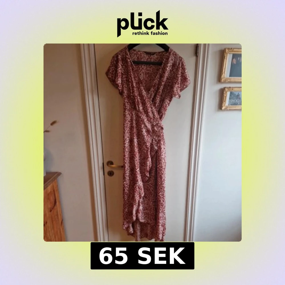 Säljer en söt blommig omlottklänning från Shein i en härlig röd nyans med vita blommor. Klänningen har korta ärmar och en volangdetalj längs nederkanten. Perfekt för sommarens alla tillfällen! 🌸