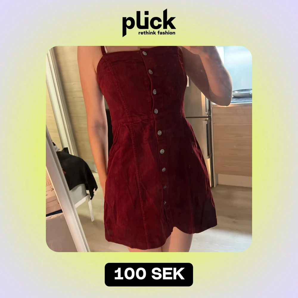 Vinröd manchesterklänning med knappar hela vägen ner. Klänningen har smala axelband (ej justerbara). Perfekt till ex jul 🎄