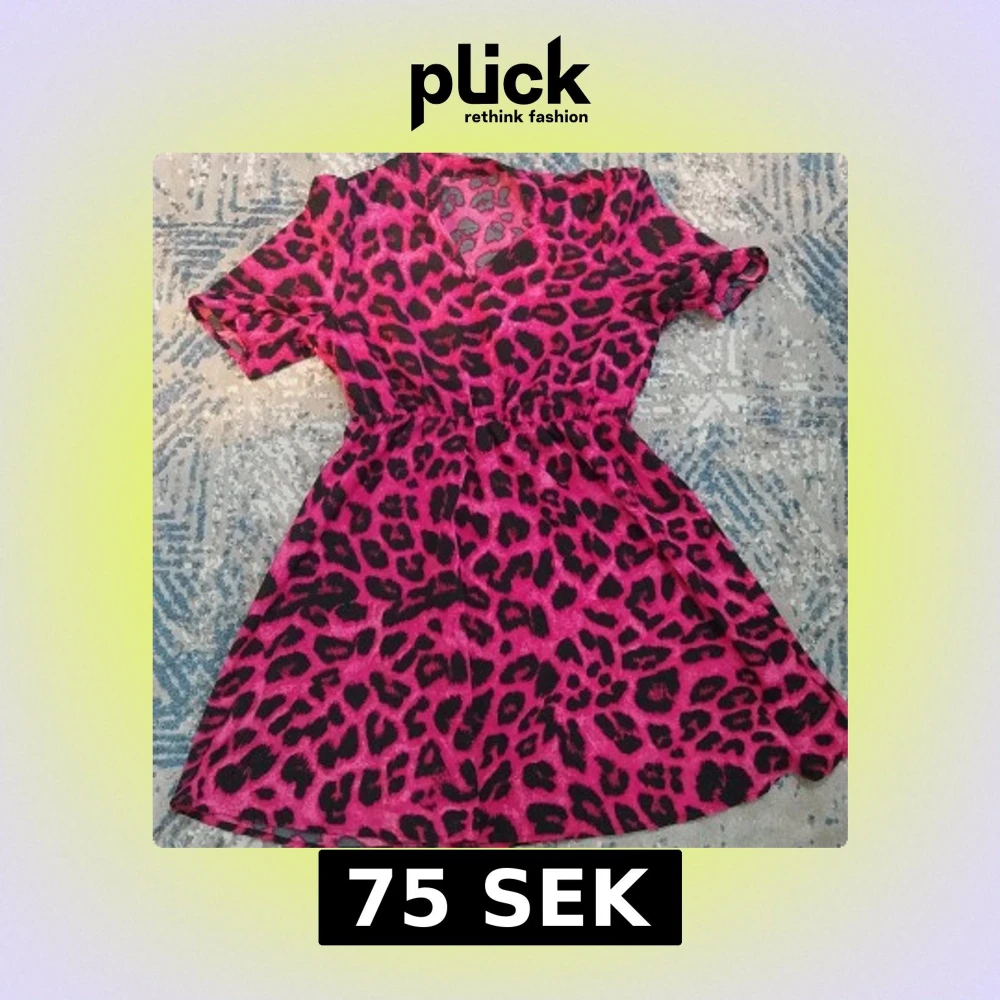 Säljer en riktigt cool kortklänning med leopardmönster i rosa och svart. Klänningen har v-ringning och korta ärmar, samt en markerad midja som ger en snygg siluett. Perfekt för dig som vill sticka ut och älskar djurmönster!