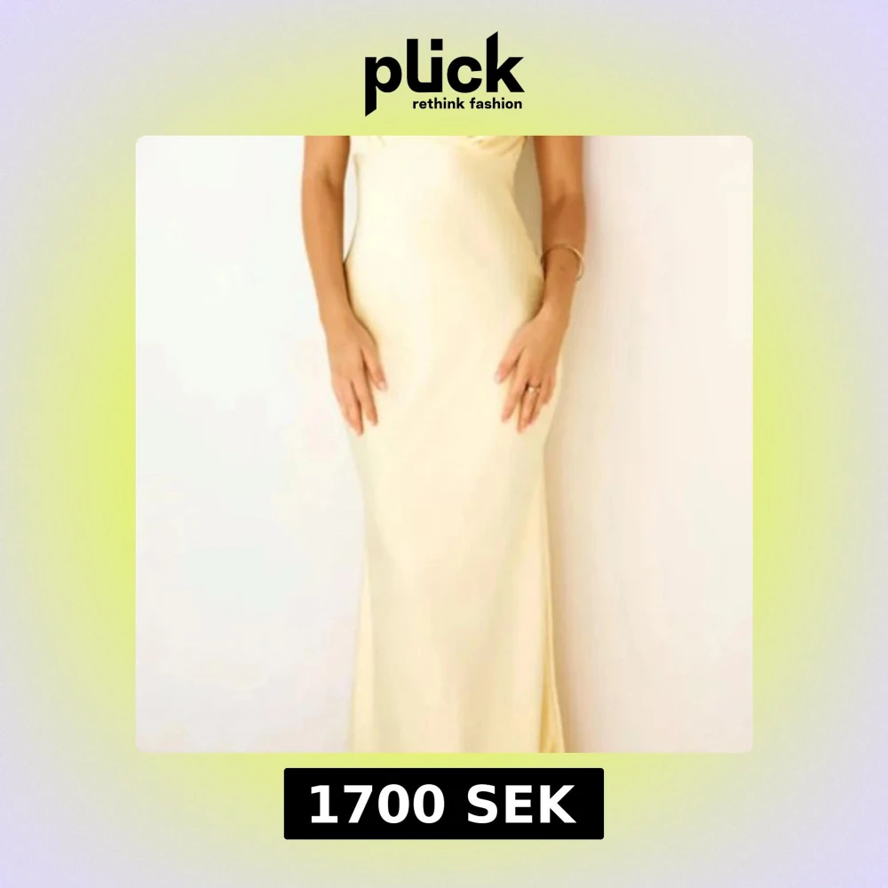 Elegant ljusgul långklänning med kortärmad design och öppen rygg. Perfekt för sommarens festligheter, och även för balen. Klänningen har en smickrande passform och en vacker drapering framtill. Aldrig använd men glömde returnera så säljer den nu. Helt slutsåld.