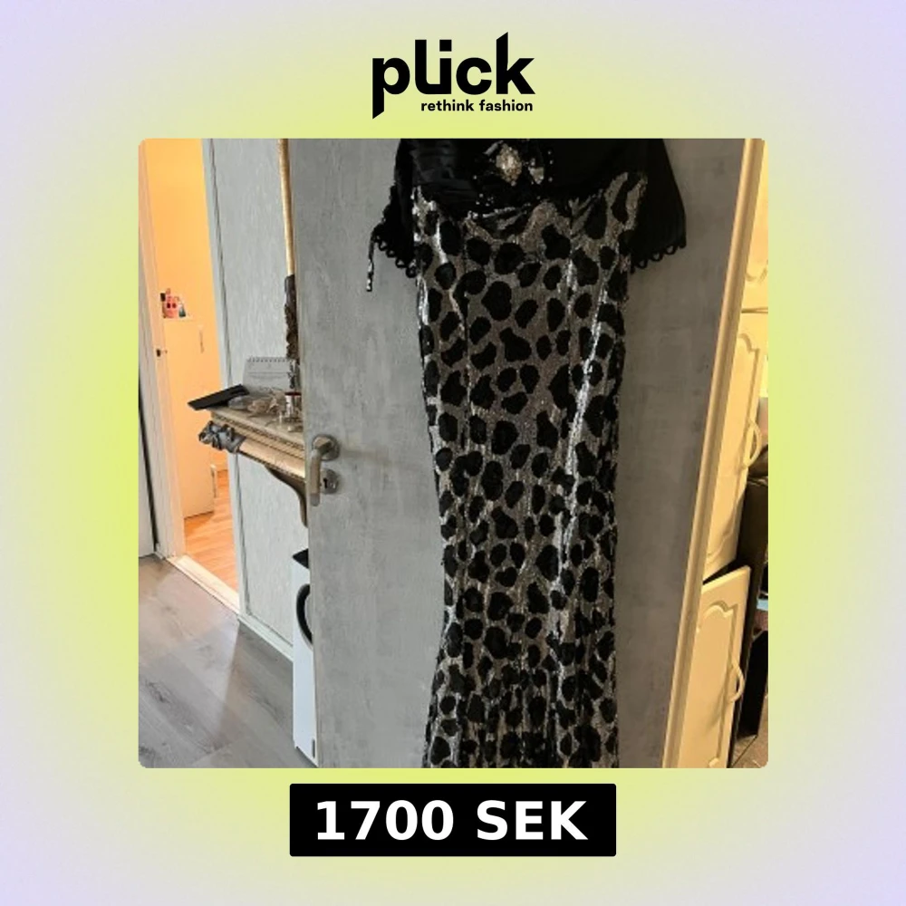 Lång glittrig leopardklänning