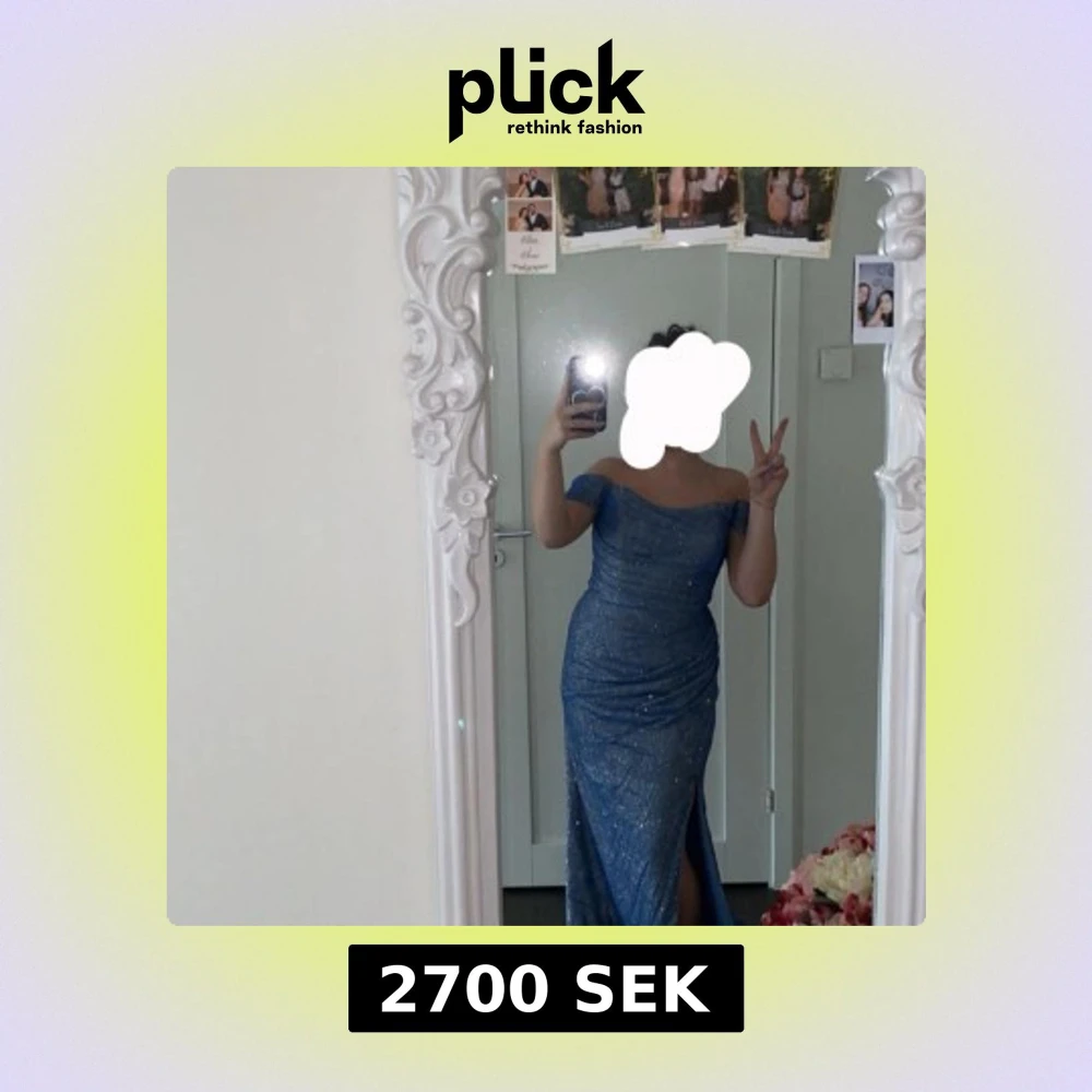 Säljer en glittrig blå långklänning med offshoulder och slits framtill. Klänningen är i storlek 38 men kan funka på en 40. Den är ändats använd en kväll och är i ett väldigt bra skick. Pris kan diskuteras vid snabbköp.