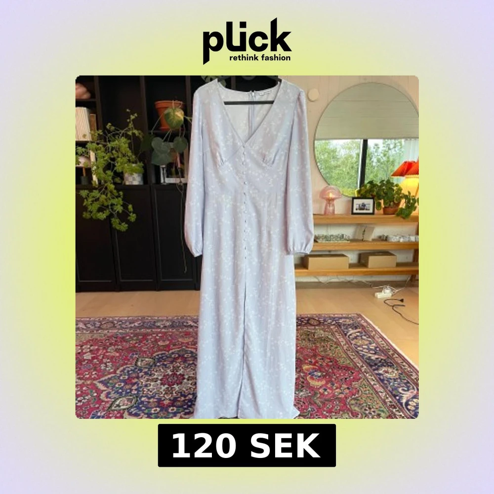 En ljuslilla klänning. En väldigt fin klänning med vita blommor med en liten slits. Säljer denna för att kläningen var fel storlek för mig! Hör gärna av dig om fler frågor och intressen💕
