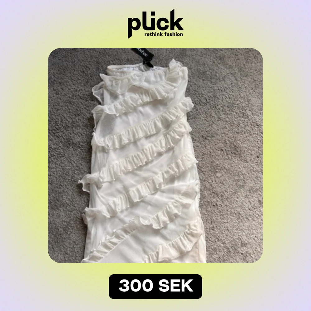 Aldrig använd då jag provat flera inför studenten Strl 38, mindre i storleken Finns en mindre obehandlad fläck som kan ha tillkommit i garderoben