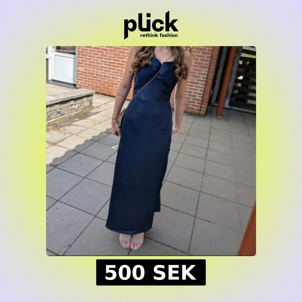 Elegant marinblå långklänning med smala axelband och figurnära passform. Klänningen har en enkel, stilren design och är tillverkad i ett glansigt material som ger en lyxig känsla. Perfekt för dig som vill ha en klassisk och tidlös look. Jag är även ganska lång så klänningen kan se kort ut på mig då jag även hade klackar. Jag är 170❤️