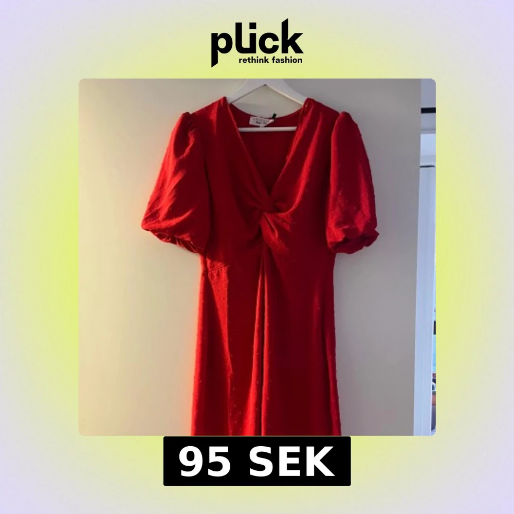 Säljer en elegant röd klänning från LolaLiza med v-ringning och puffiga kortärmar.