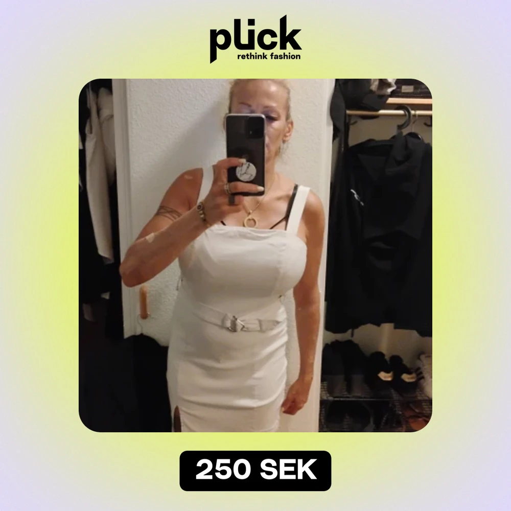Ni har köpt vit klänning med skärp i midjan med dragkedja i ryggen och slits på sidan storlek 38