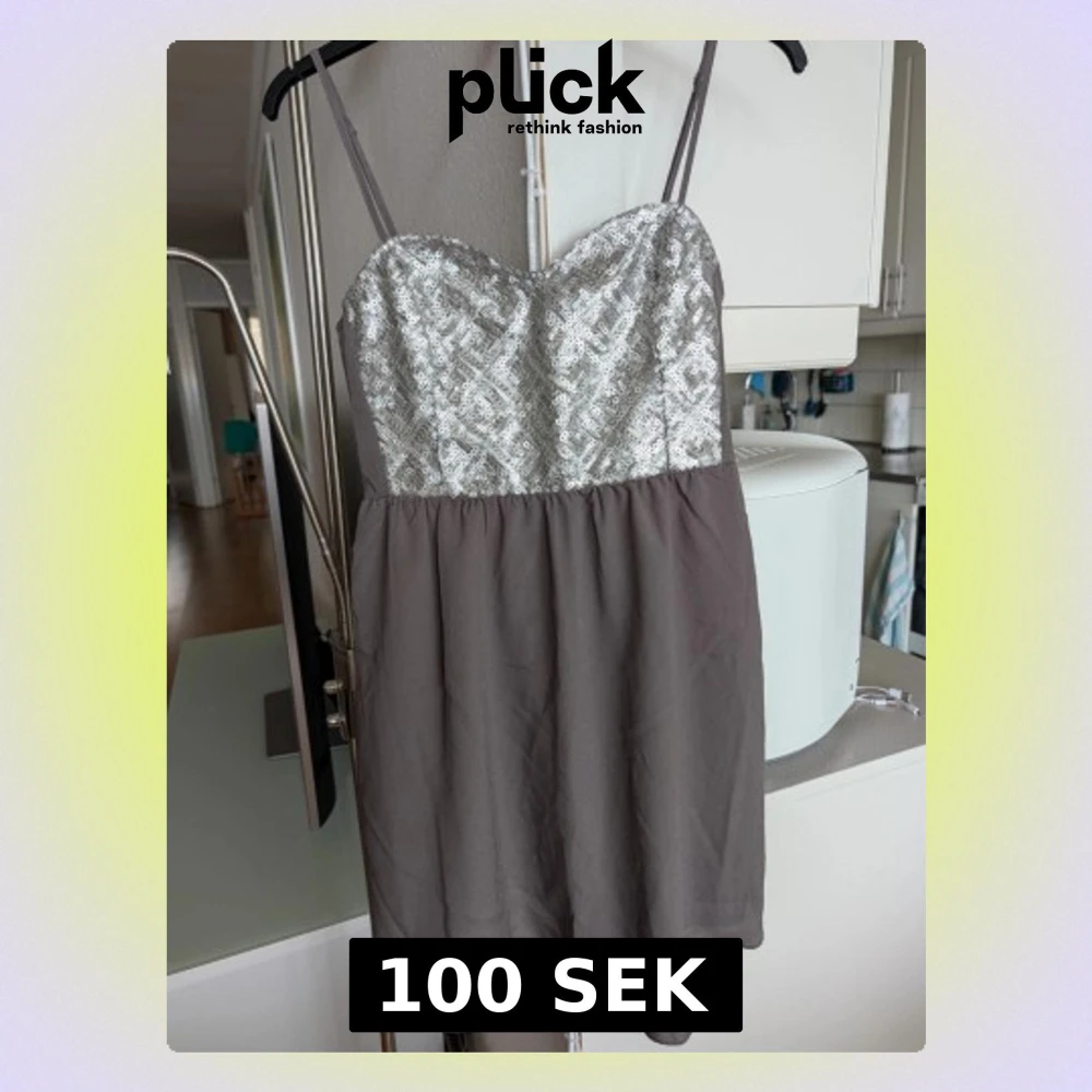 Snygg topp med reglerbara axelband från Divided H&M med glittrig silverpaljett upptill och enkel grå nederdel. Perfekt för dig som vill sticka ut med lite extra glitter.
