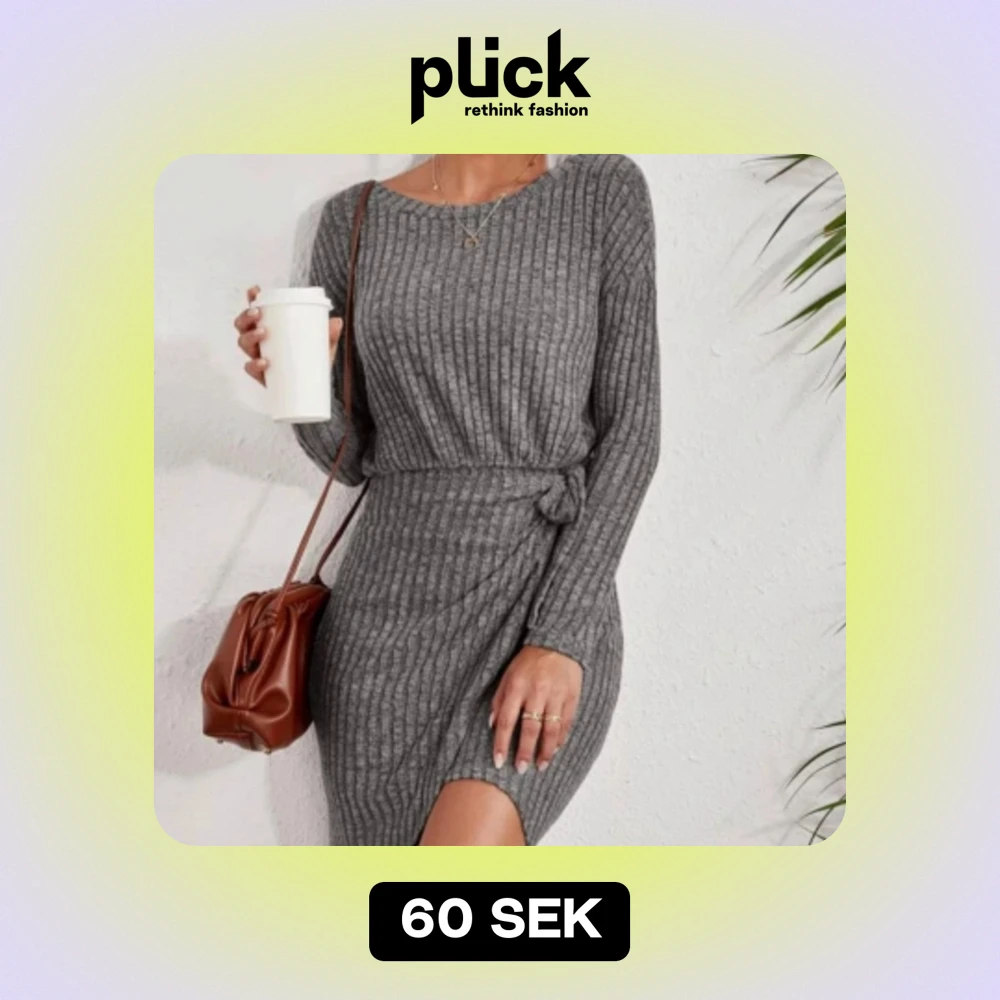 Grå ribbad klänning med knyt