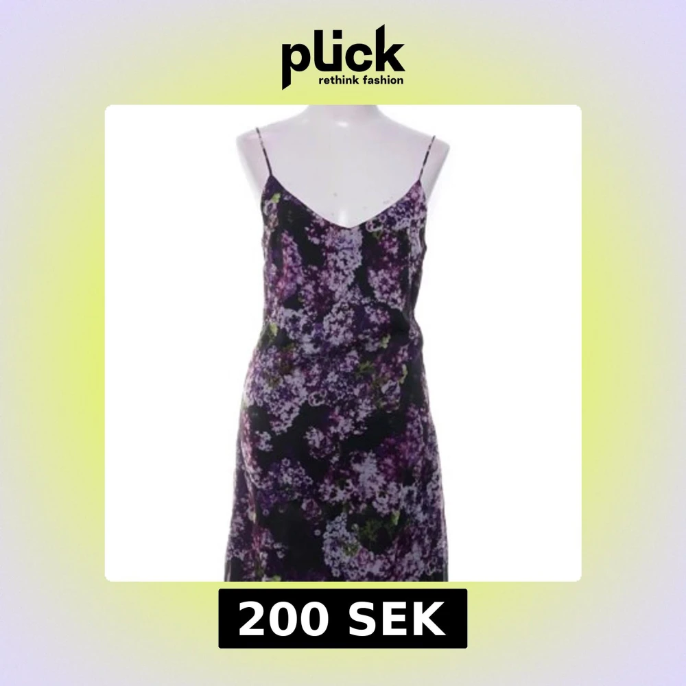 Snygg lila och svart slipklänning med blommigt mönster och tunna axelband. Klänningen har en lätt v-ringning och är tillverkad i ett tunt, flowy material som ger en luftig känsla. Perfekt för dig som vill sticka ut med ett färgstarkt plagg.