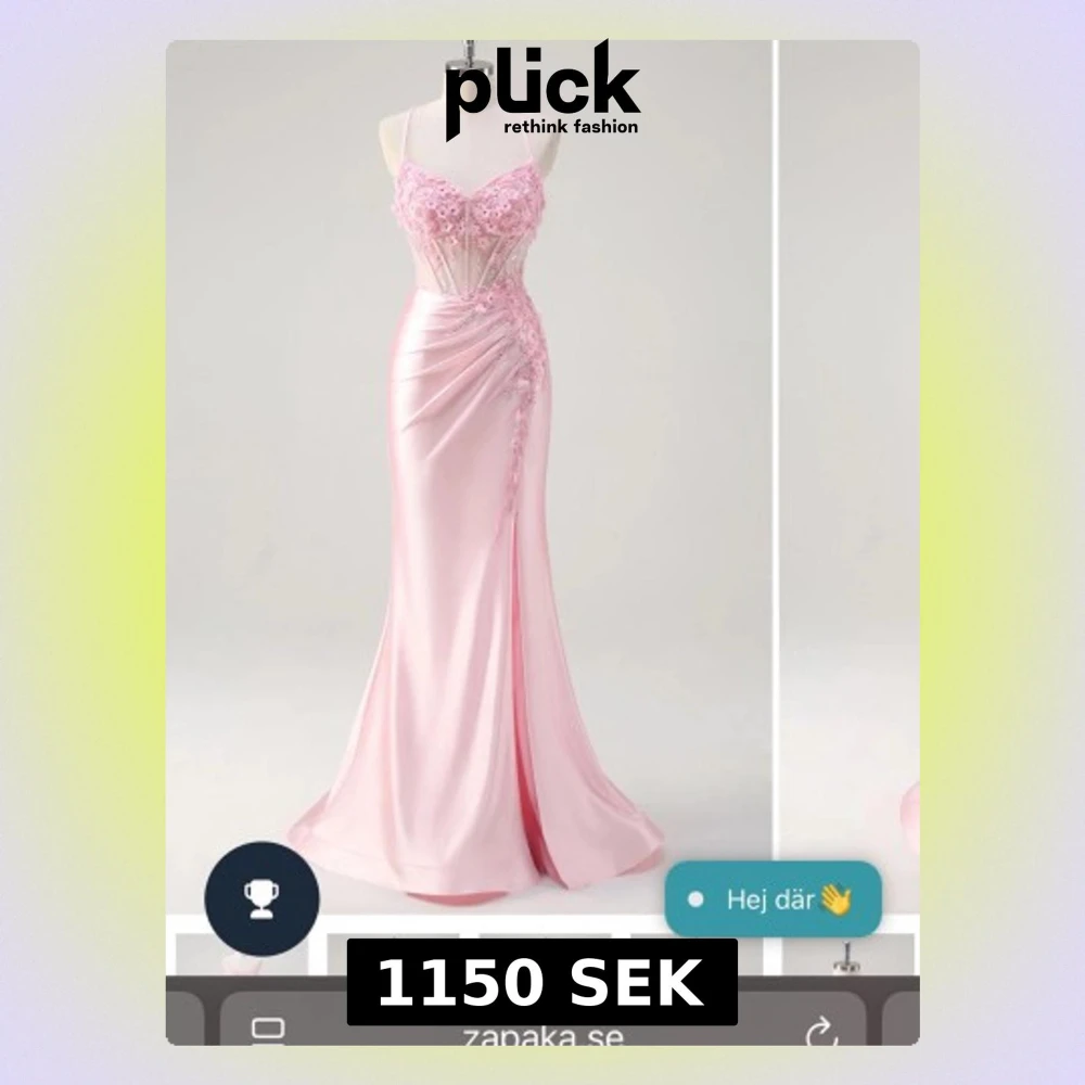 Säljer en elegant ljusrosa lång klänning med tunna axelband transparent liv med spets och pärlbroderier samt figurnära satinliknande kjol med drapering och slits framtill. Perfekt för bal.. Beställde hem men ångrade sedan köpet så den är bara testad o äsch ej använd.
