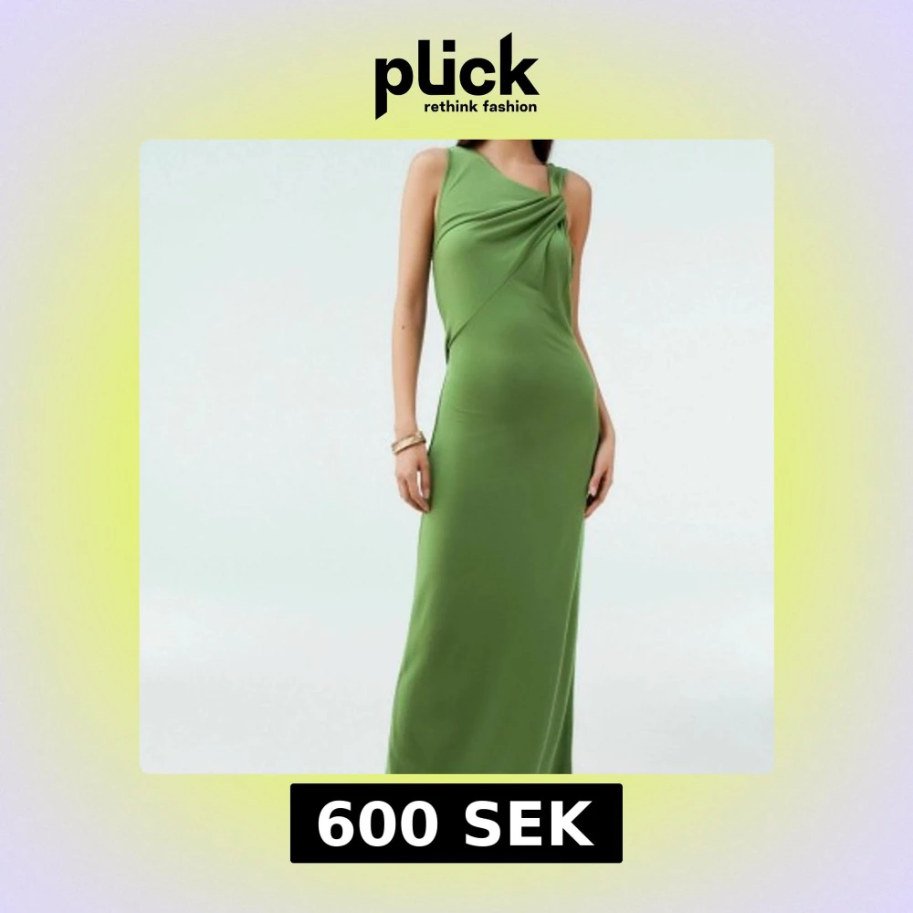 Snygg grön långklänning med oneshoulder och draperad detalj framtill. Klänningen har en tight passform och är ärmlös, perfekt för dig som vill sticka ut med en stilren look.