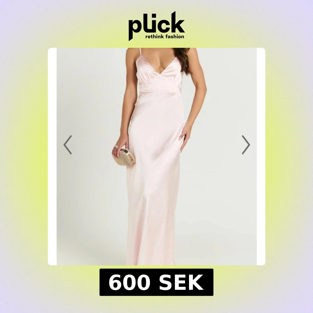 Supersnygg ljusrosa långklänning i satin med smala axelband och v-ringning. Klänningen har en figurnära passform upptill och faller snyggt längs kroppen. Perfekt för bal eller student. Enkel och elegant design som ger en lyxig känsla. ALDRIG ANVÄND MED LAPP KVAR!