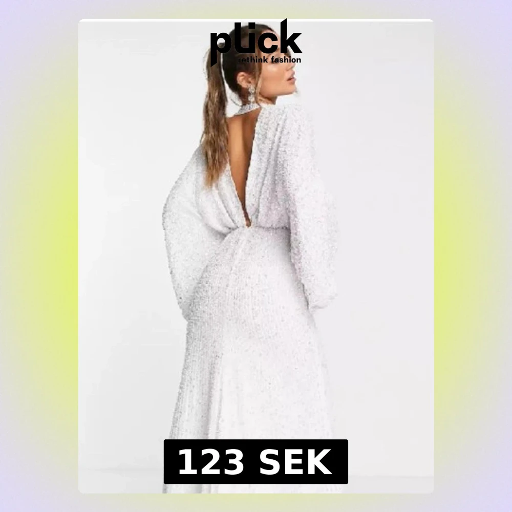 Vit glittrig långklänning med öppen rygg