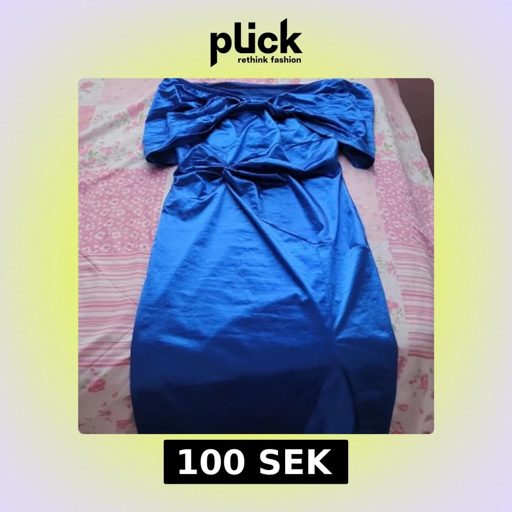 Snygg blå axelbandslös klänning i glansigt material. Perfekt för en kväll ute med vänner. Klänningen har en elegant drapering och en tight passform som framhäver figuren.