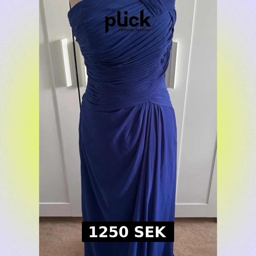 Säljer en marinblå långklänning från Izidress med oneshoulder-design och glittriga stenar på axeln. Klänningen har draperad överdel och mjukt fallande tyg som ger en elegant siluett. Perfekt för bal eller festliga tillfällen.