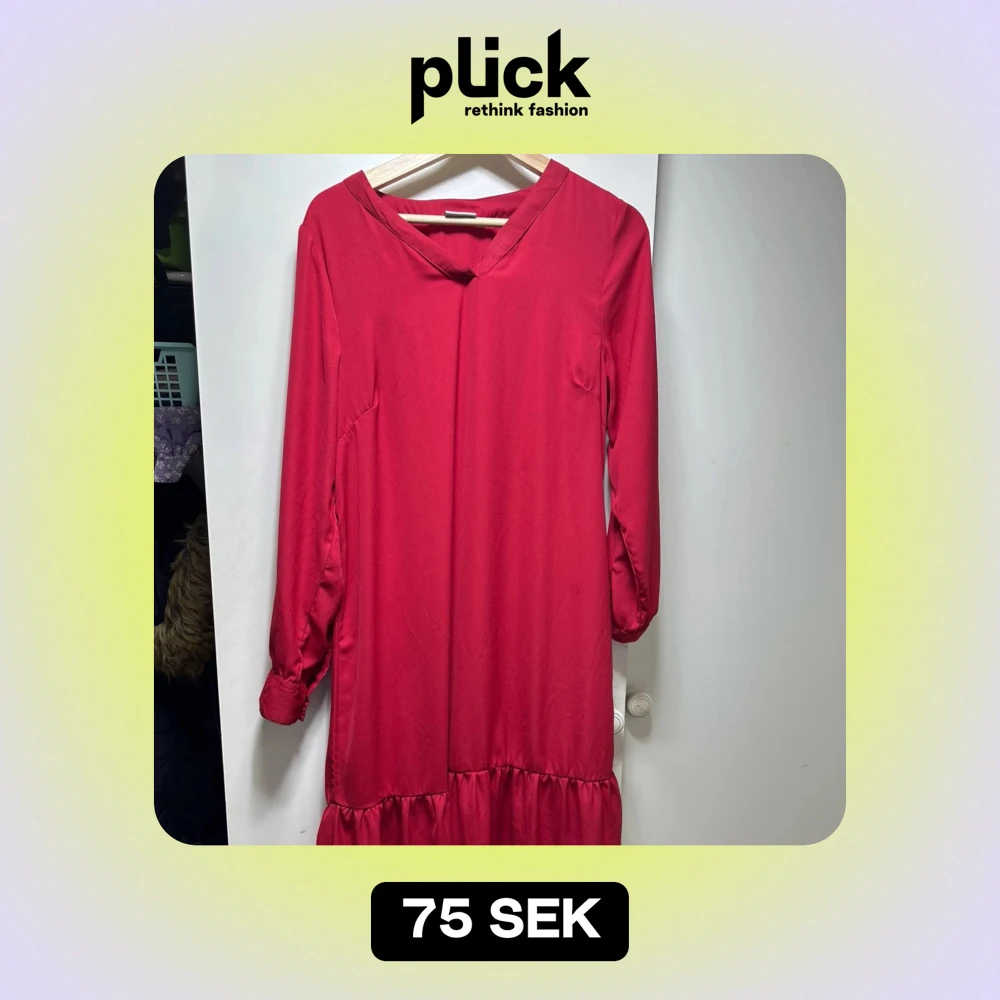 Säljer en superfin röd långklänning med volangdetalj längst ner. Klänningen har långa ärmar och en v-ringad hals. Perfekt för höst och vinter, kanske till julfesten! Materialet känns mjukt och bekvämt, troligen polyester. Passar perfekt för en festlig kväll.