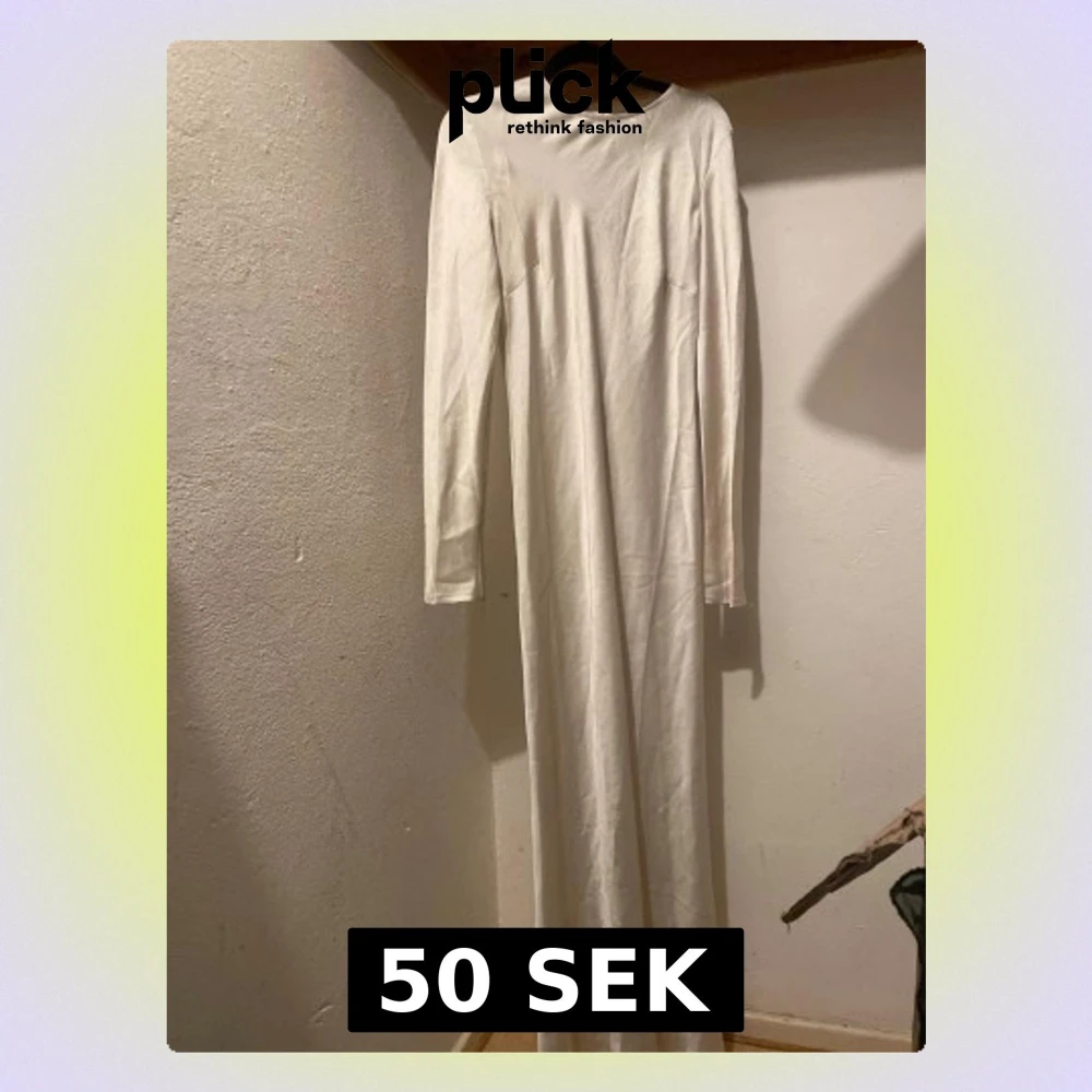 En stilren, beige långklänning med lång ärm och rund halsringning. Klänningen har en rak och enkel siluett, dragkedja i ryggen och är tillverkad i ett slätt tyg som ger en elegant känsla. Perfekt för dig som gillar minimalistisk och clean stil.