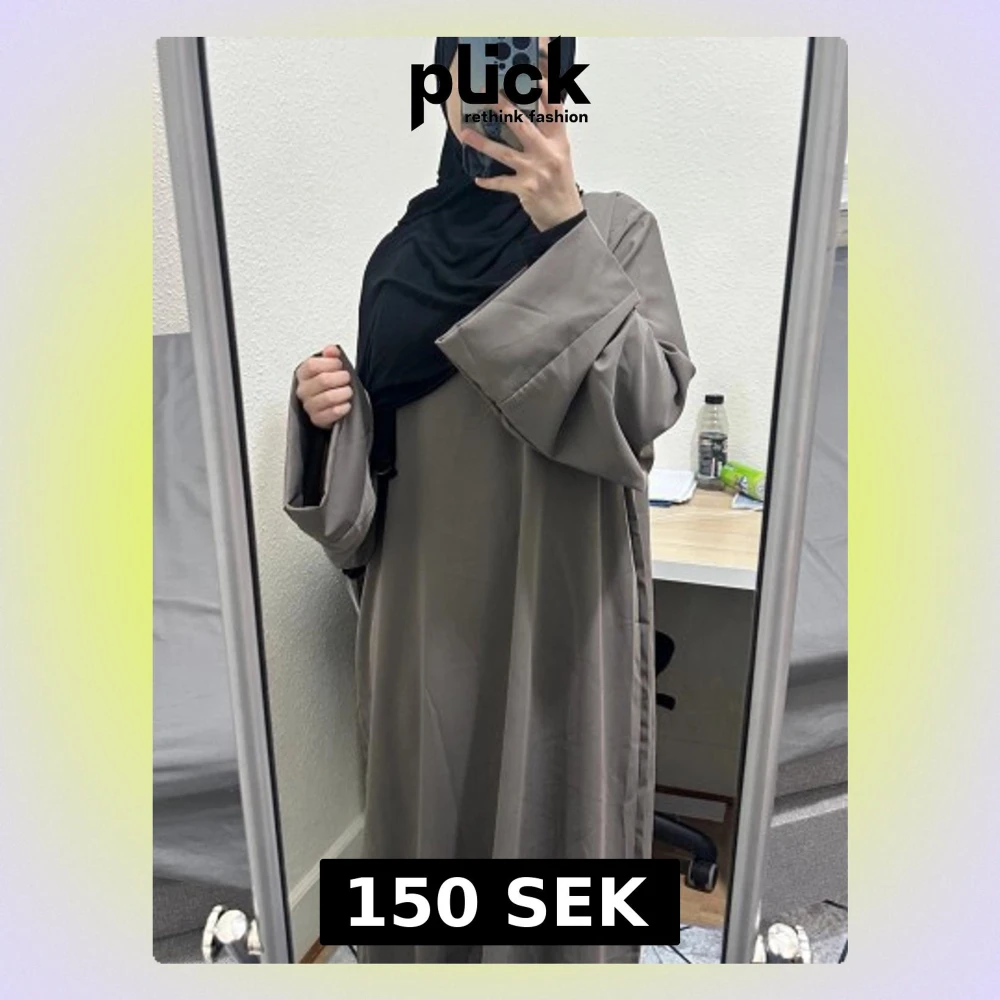 Säljer en beige långabaya med riktigt vida ärmar och enkel, rak passform. Klänningen är helt enfärgad och har en stilren look som är lätt att matcha. Materialet känns mjukt och har ett snyggt fall. Perfekt för dig som gillar minimalistisk stil.