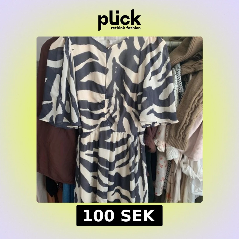 Snygg klänning med zebramönster i svart och vitt. Modellen har vida, korta ärmar och markerad midja med rynkdetalj framtill. Lätt och luftig känsla, perfekt för dig som vill sticka ut med ett djurmönster.