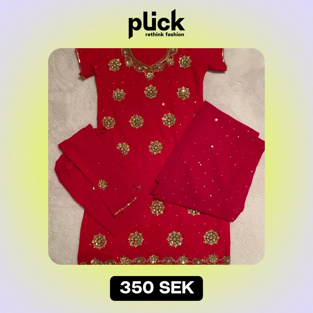 Indisk klänning med sjal & byxor Storlek M Knappt använd