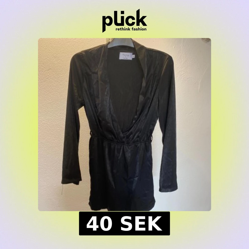 Supersnygg svart kort omlottklänning från NA-KD x Hannalicious. Klänningen har lång ärm, djup v-ringning och markerad. Materialet är glansigt och känns lyxigt, perfekt för att sticka ut. Enkel men ändå elegant design. Saknar bältet men går att ha det utan eller med ett annat svart bälte till.