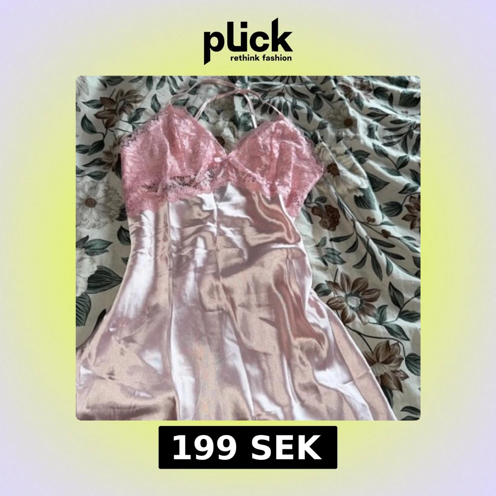Elegant rosa klänning i siden med vackra spetsdetaljer upptill. Axelbandslös design med en mjuk och glansig finish. Perfekt för speciella tillfällen.