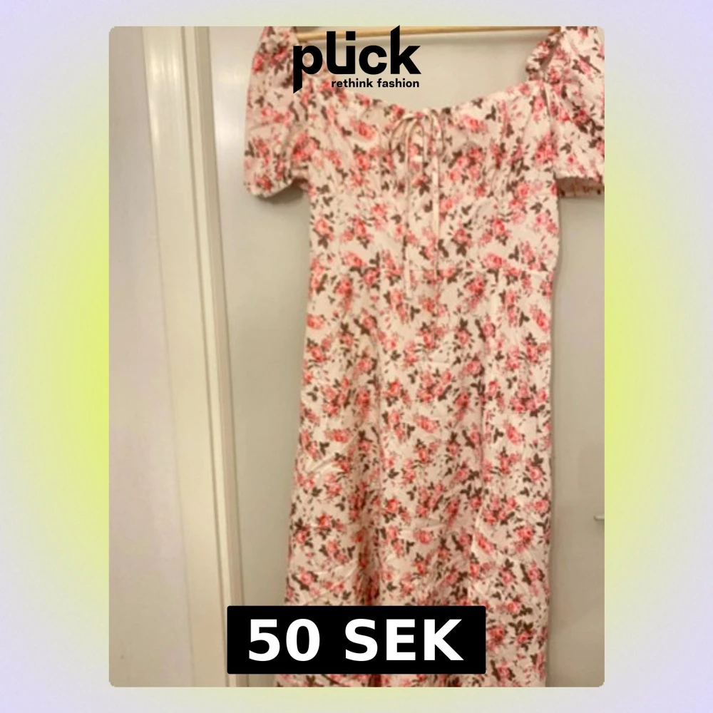 Superfin långklänning med blommigt mönster i rosa och brunt på ljus botten. Klänningen har puffiga korta ärmar, snörning framtill och offshoulder-design. Perfekt för sommarens alla tillfällen, med mjukt och lätt material som känns skönt mot huden.