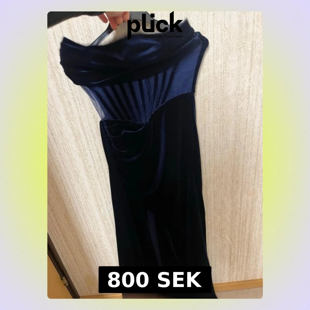 Elegant mörkblå långklänning i sammet med axelbandslös design och draperad överdel. Klänningen har en unik struktur med veckade detaljer upptill och en mjuk, följsam siluett. Perfekt för dig som vill sticka ut med en lyxig look.