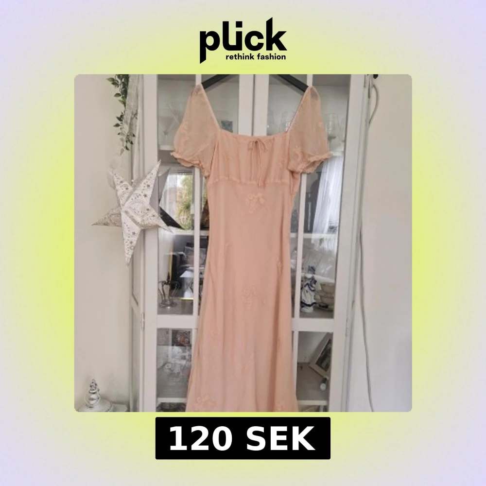 Superfin ljusrosa långklänning med puffiga kortärmar och broderade blommor. Klänningen har en söt knytning fram vid halsen och är gjord i ett tunt, skirt material som ger en romantisk vibe. Perfekt för sommarens alla tillfällen!