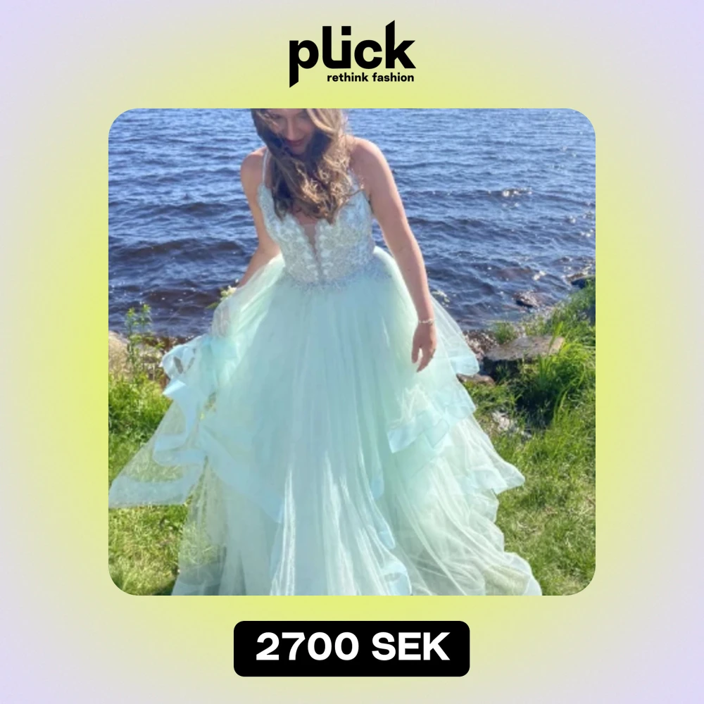 Jag säljer nu min balklänning från studenten. Klänningen är otroligt vacker och är i ett bra skick, samt är kemtvättad. Nypriset är 3025kr!Den är använd endast en gång. Det finns några fläckar som inte gick bort vid kemtvätt längs ner på klänningen, men de är inget som syns när man har den på sig.