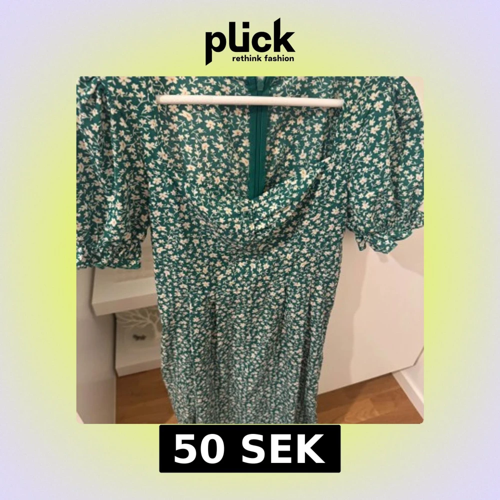 Supersöt grön klänning med vitt blommönster och puffiga korta ärmar. Klänningen har en lätt draperad halsringning och stängs med dragkedja bak. Perfekt för sommarens alla tillfällen!