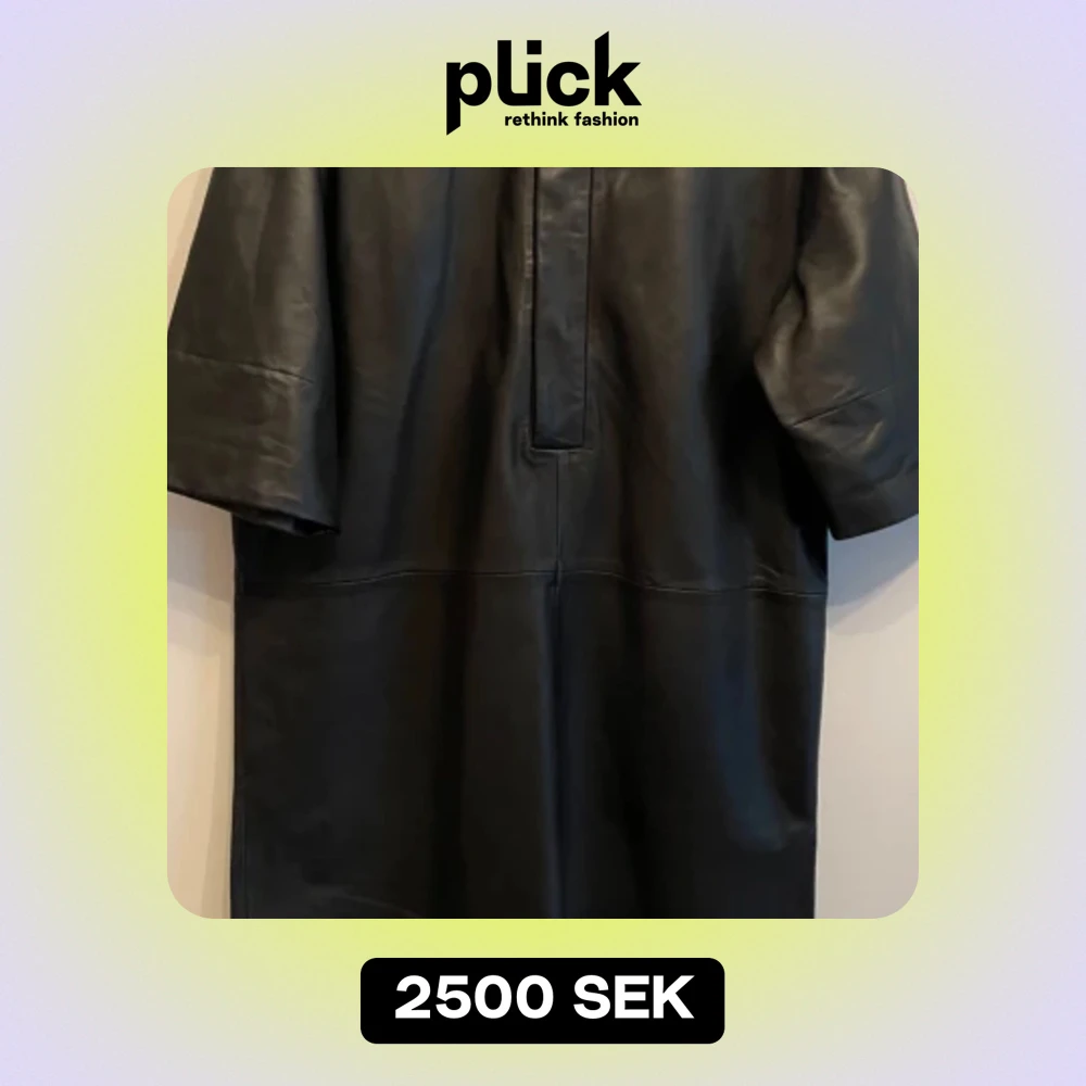 En helt ny svart skinn klänning. Lammskinn, väldigt mjukt o följsamt skinn. Märke Second Female. Storlek S, passar även M. Krage, knappar fram, fickor i sidorna. 3:4 ärm.