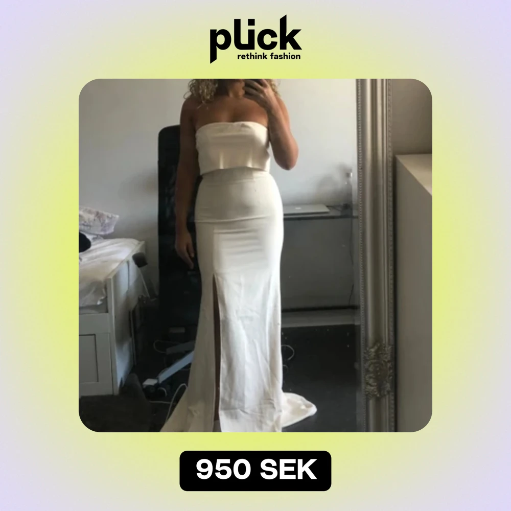 Jarlo London balklänning med slits endast använd 1 gång och är i nyskick. Strl 38 och kan även passa strl 36. Nypris 2150 kr. Skulle säga att färgen är crémevit.