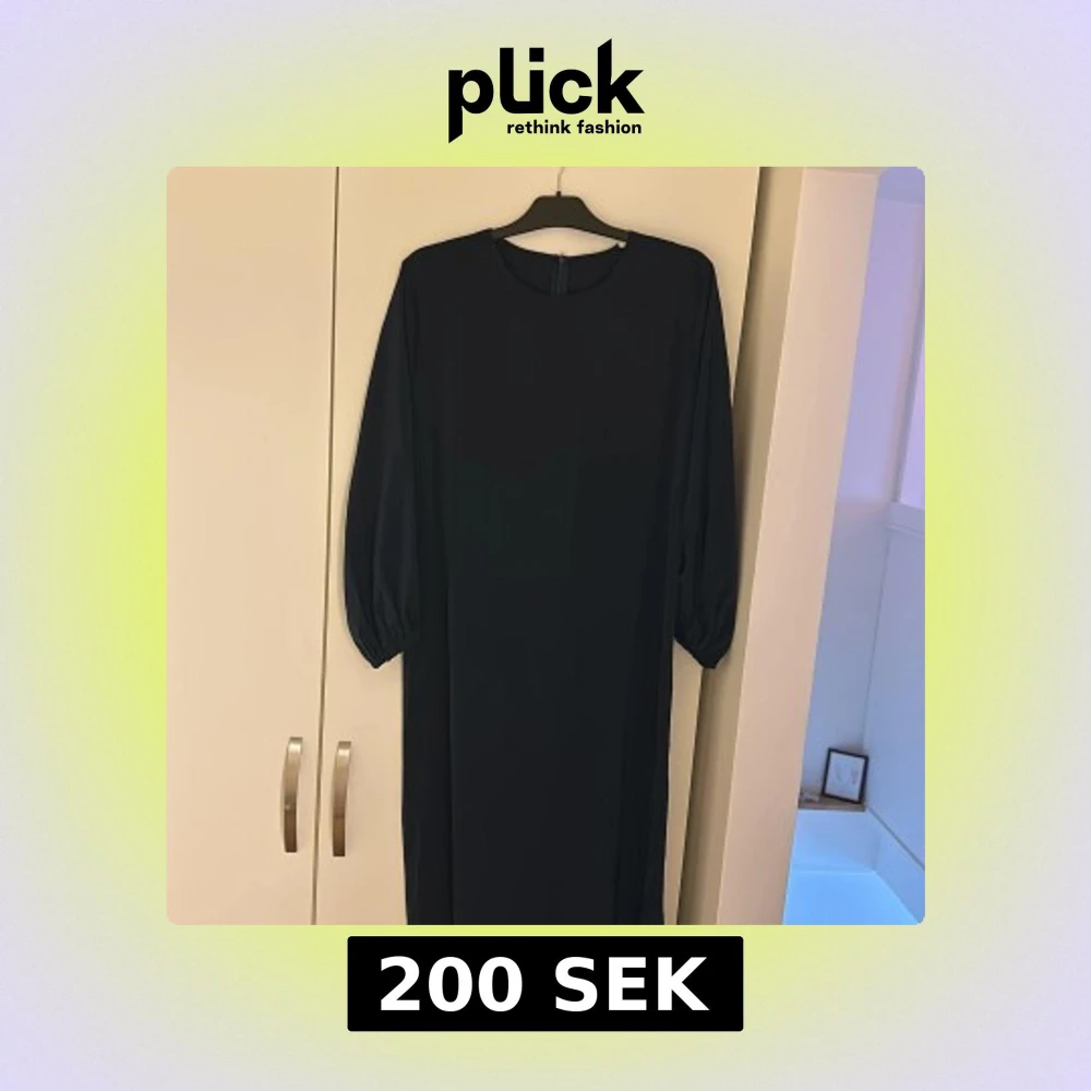 Elegant svart långklänning med långa ärmar och rund halsringning. Perfekt för en stilren och klassisk look. Klänningen har en enkel design som gör den lätt att matcha med olika accessoarer.