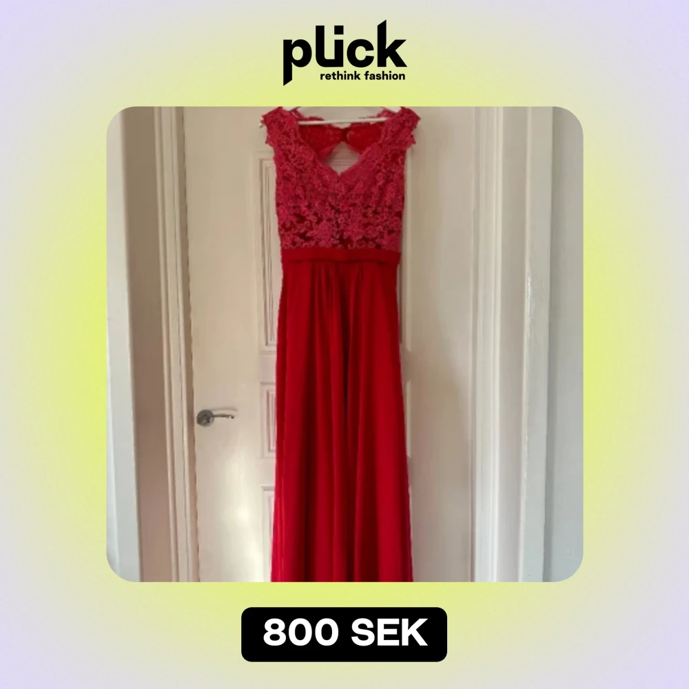 Säljer min superfina balklänning i färgen röd. Storlek S/M. Den enda skavanken är att knappen längst ned på baksidan är sydd. Nytvättad. Inköpt för 4000kr säljer för 800kr.