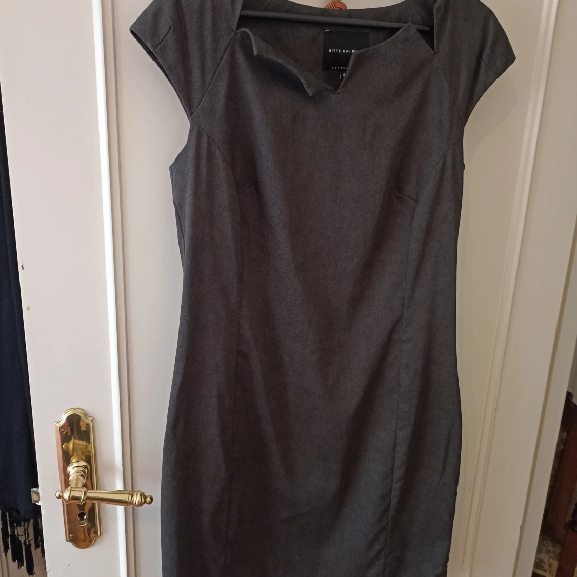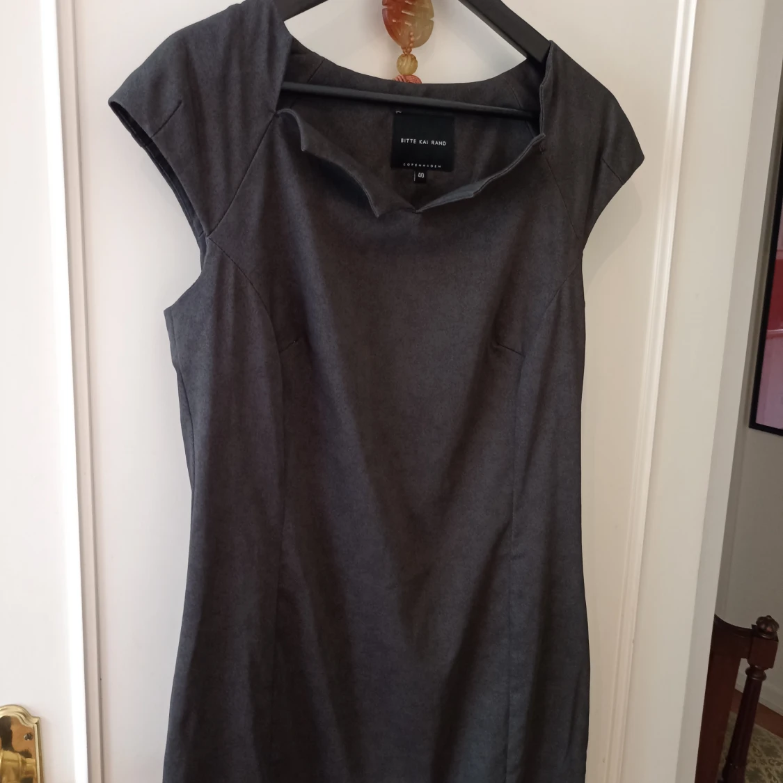 Snygg mörkgrå kortklänning från Bitte Kai Rand med cool krage och minimalistisk design. Klänningen har korta ärmar och figurnära passform, perfekt för dig som gillar stilren look. Materialet känns mjukt och följsamt.