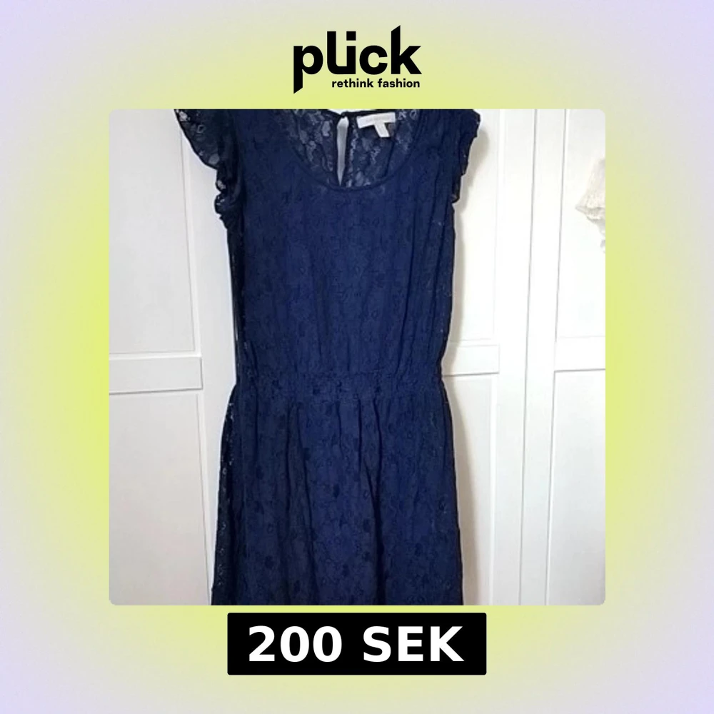 Snygg marinblå klänning från Springfield i spets med korta volangärmar och rund halsringning. Klänningen har markerad midja och är helfodrad förutom ärmarna som är transparenta. Perfekt för dig som gillar romantisk stil och vill sticka ut.