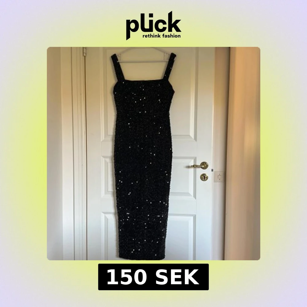 Supersnygg svart långklänning med glittriga paljetter över hela klänningen. Använd 1 gång