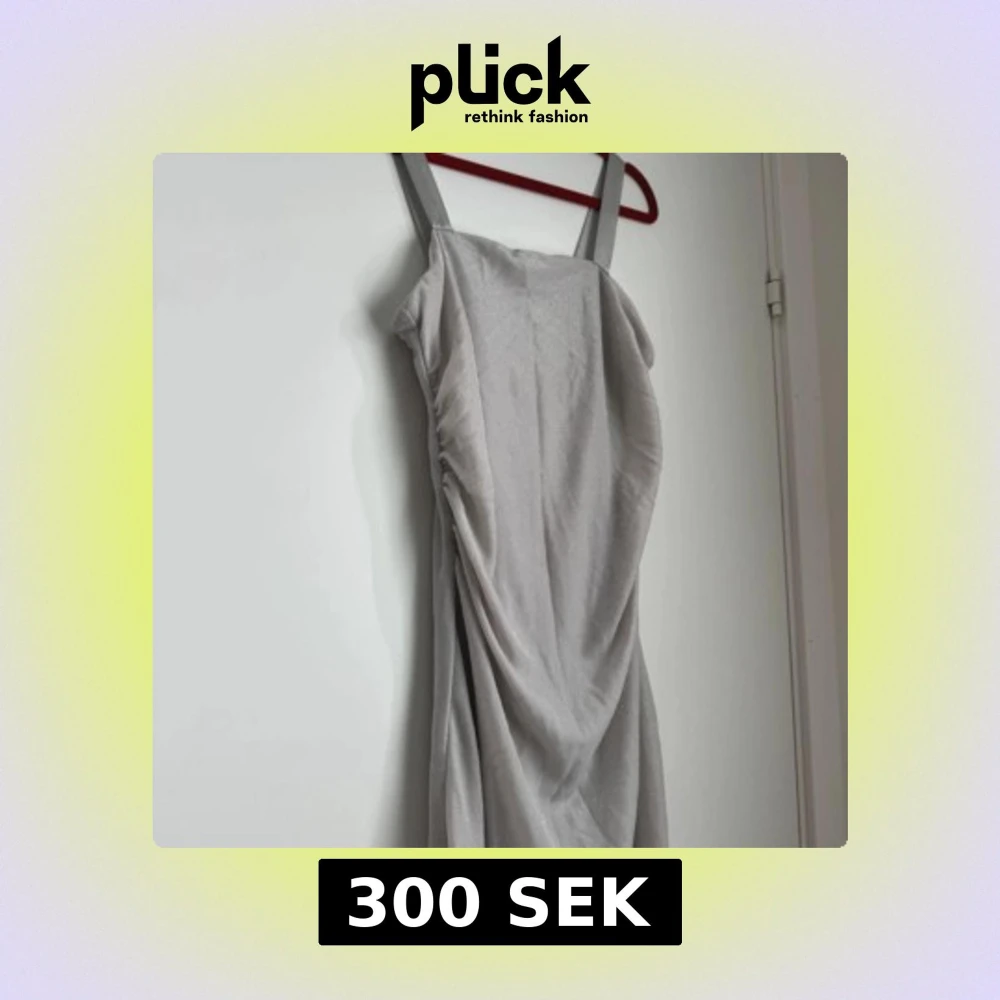 Snygg långklänning i silver med glittrigt tyg och draperad detalj längs sidan. Klänningen har breda axelband och en elegant, figurnära passform som ger en lyxig känsla. Perfekt för dig som vill sticka ut med en stilren look.