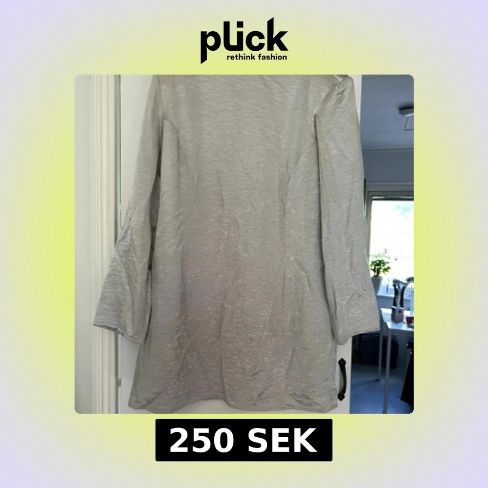 Säljer en beige kortklänning med långärmade ärmar och en djup, öppen rygg. Klänningen har en enkel, rak passform och är tillverkad i ett lätt, slätt material som ger en stilren look. Perfekt för dig som gillar minimalistisk design och vill sticka ut med en snygg ryggdetalj.