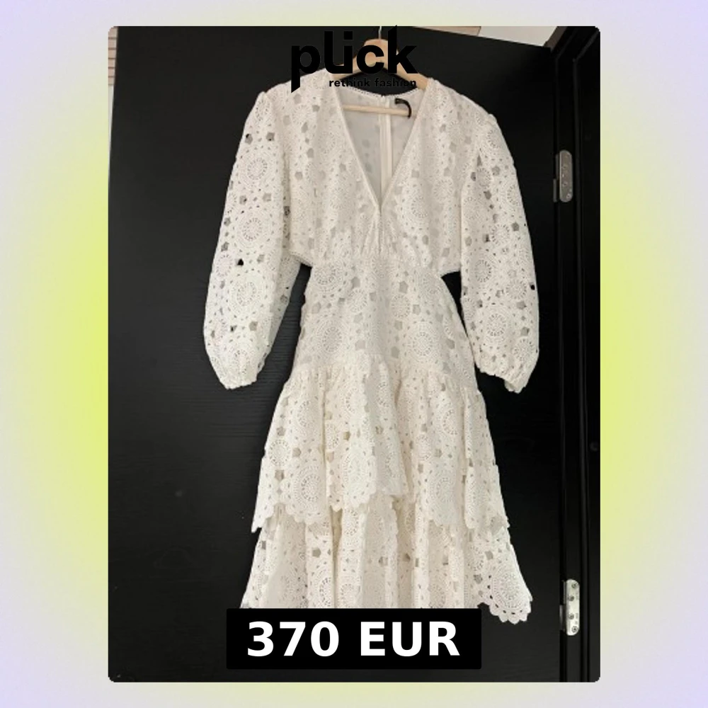 Superfin vit kortklänning från Maje med v-ringning, långärmade puffärmar och snygga cut-outs i midjan. Klänningen har ett detaljerat broderat spetsmönster och volanger i kjolen. Dragkedja i ryggen för enkel påklädning. Perfekt för dig som gillar romantisk och trendig stil.