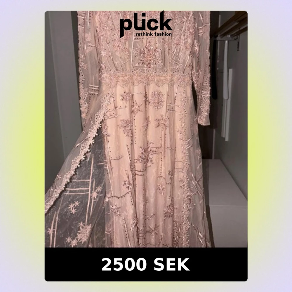 Magisk ljusrosa långklänning med broderade spetsdetaljer och blommigt mönster. Klänningen har transparenta partier, lång ärm och vacker volangkant. Perfekt för dig som vill sticka ut med en romantisk look.