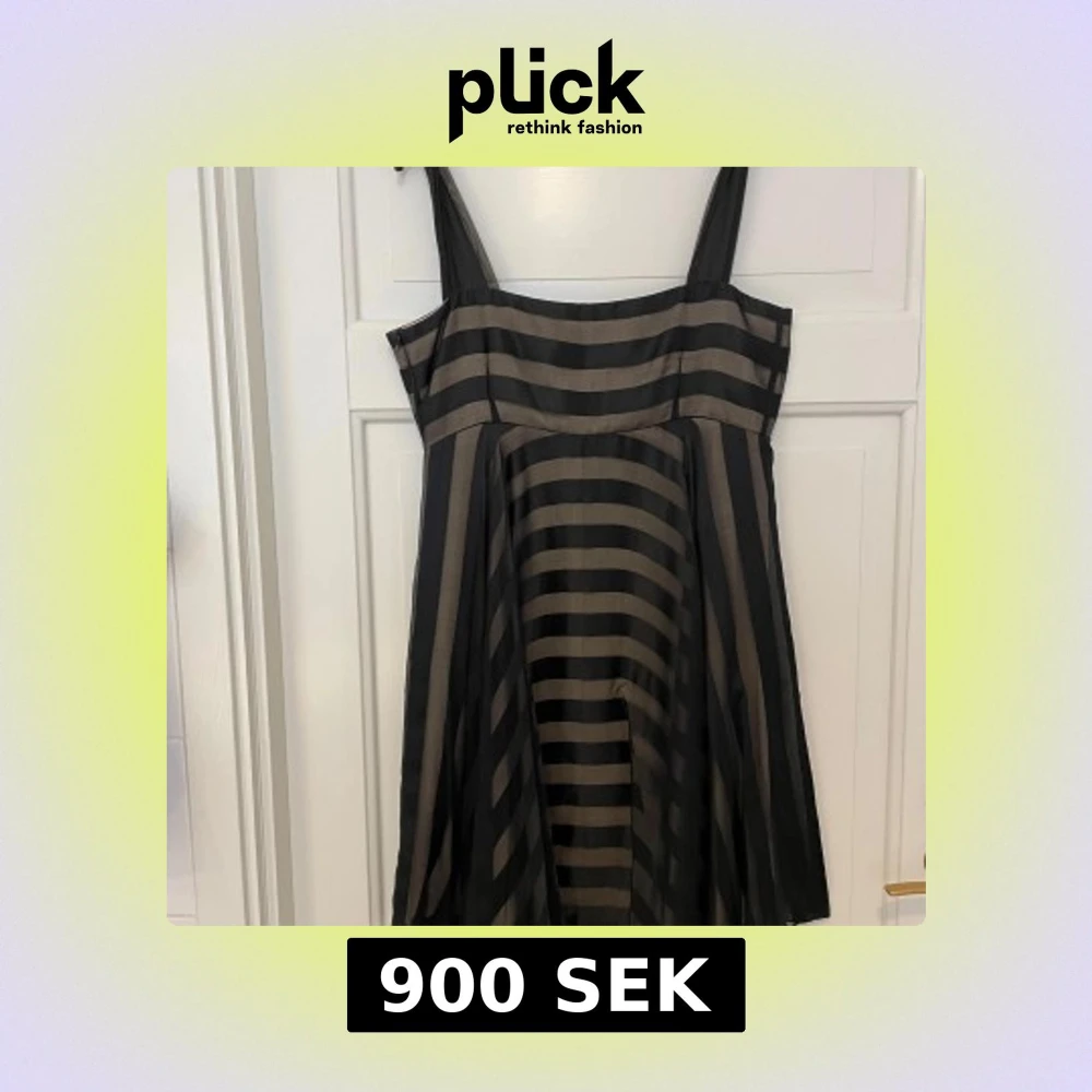 Snygg cocktailklänning från Sand Copenhagen med breda svarta och beige ränder. Klänningen har axelband, dragkedja i sidan och ett lätt, luftigt tyg med snyggt fall som ger en cool look. Perfekt för dig som gillar stilrena mönster och vill sticka ut lite extra.