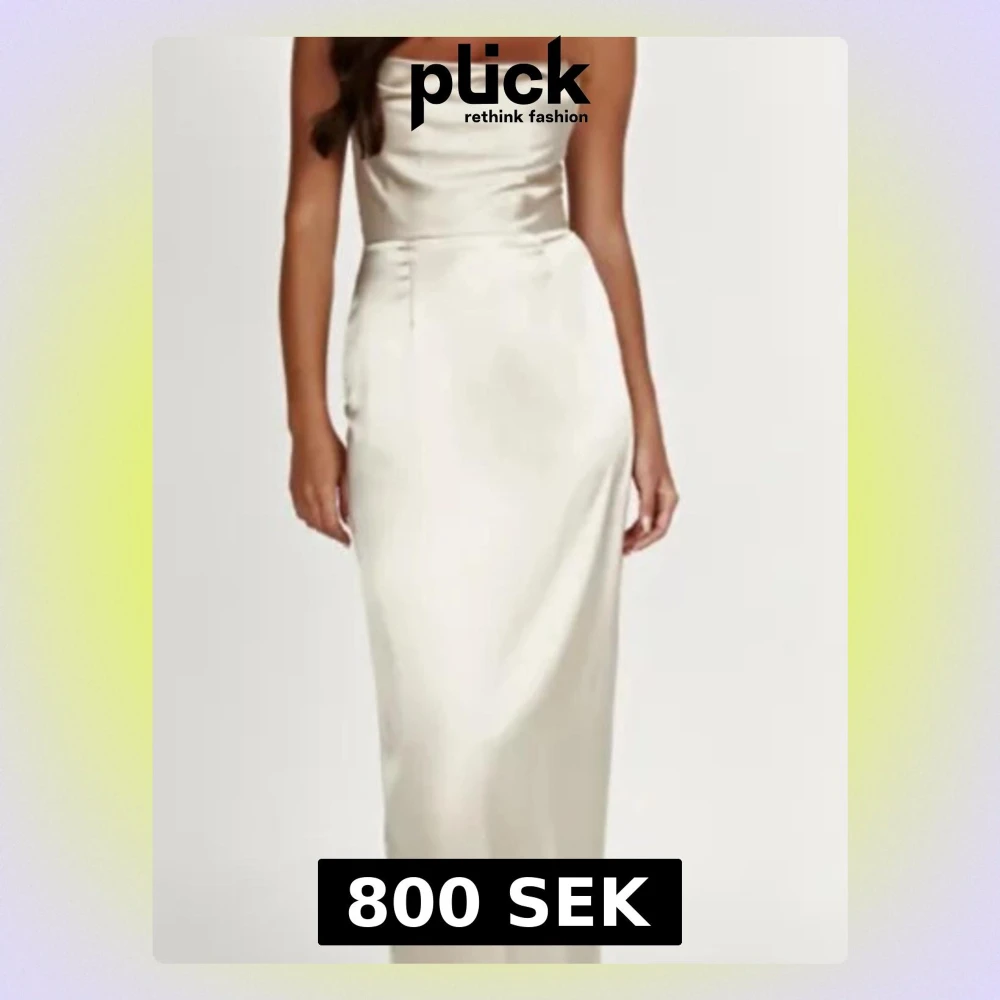 Elegant axelbandslös långklänning i champagnefärgad satin med rak, figurnära passform och draperad överdel. Perfekt för dig som vill ha en stilren och lyxig look. Klänningen har en slät yta och subtil glans som ger en exklusiv känsla.