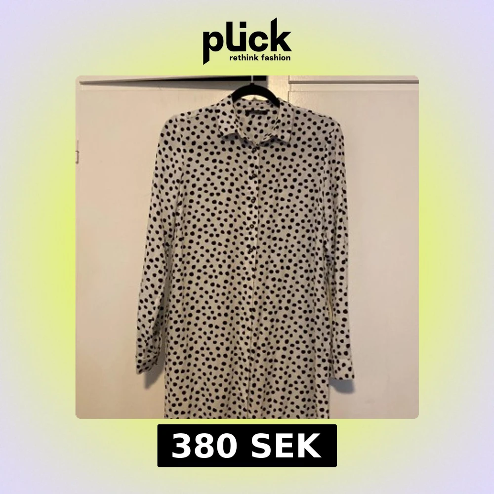 Vit skjortklänning med svarta prickar från Esmara. Långärmad med klassisk krage och knäppning framtill. Lätt och flowy känsla, perfekt för dig som gillar en avslappnad men ändå snygg look.