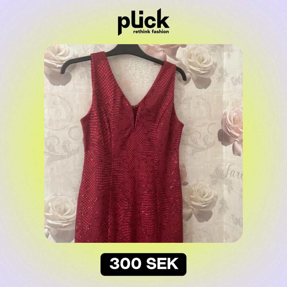 Säljer en superfin röd långklänning med glittrigt mönster. Klänningen har en v-ringad hals och är ärmlös, perfekt för fest eller bal. Materialet känns som polyester och den har en tight passning som framhäver figuren. Klänningen är i nyskick och redo för att användas på nästa stora event! Använd en gång. Köparen står för frakten!