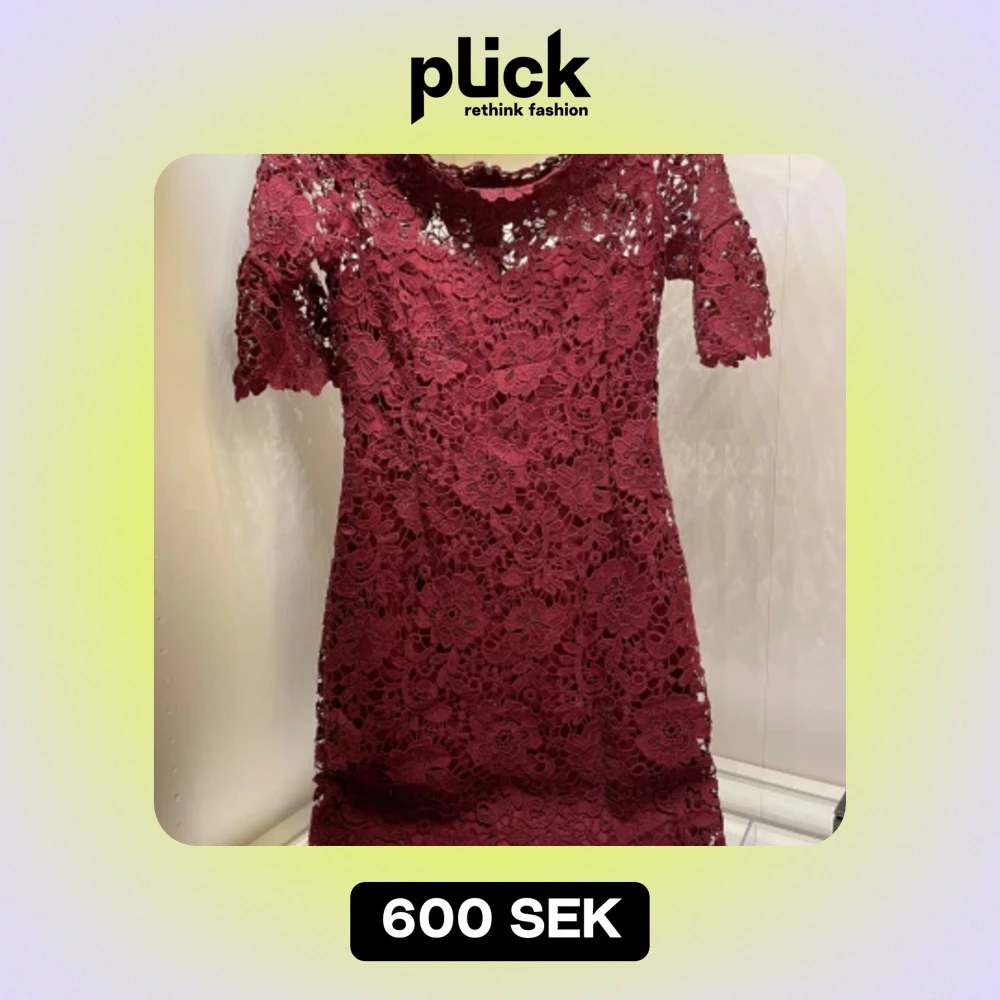 Säljer en superfin vinröd spetsklänning med kortärmad design. Klänningen har ett vackert blommigt mönster och en dragkedja i ryggen. Perfekt för festliga tillfällen! Bra skick, inga defekter.